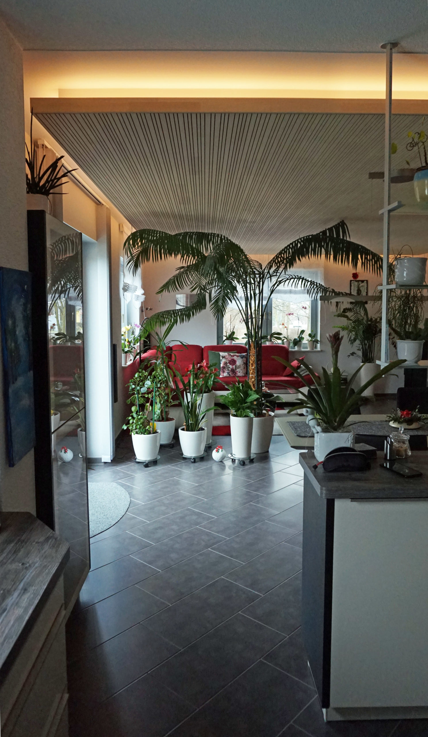 Das zweite Bedürfnis war ein stimmungsvolles Raum-Licht. Wir haben LED-Streifen in den Deckenabschluss eingebaut und erreichen ein flächiges indirektes Licht, welches je nach Tageszeit oder Vorhaben gedimmt werden kann.