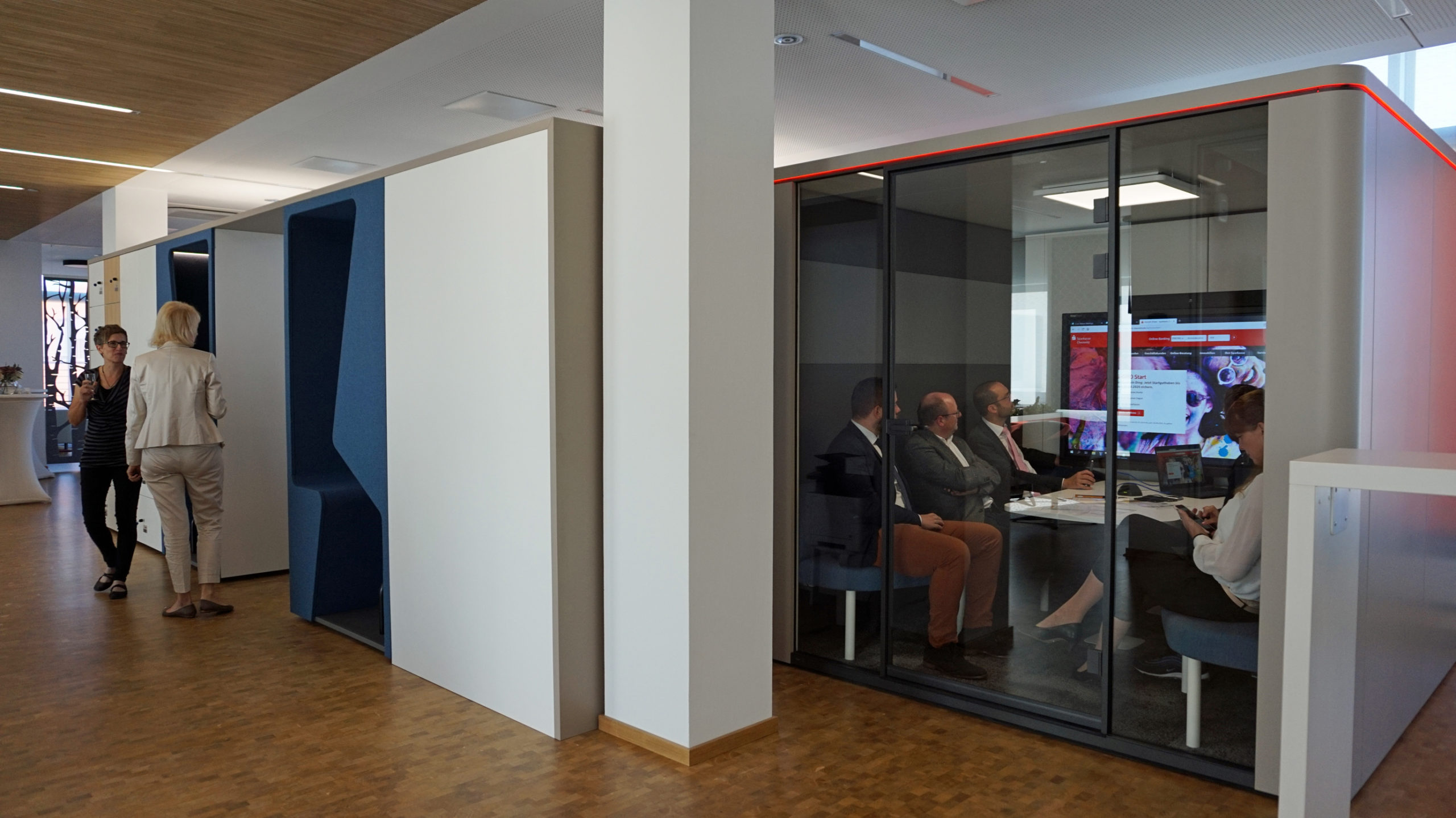 Bei der Axilaris GmbH im Sparkassengebäude Moritzhof in Chemnitz wurde seit März ein ehemaliger Saal in eine moderne Büro- und Meeting-Etage verwandelt.