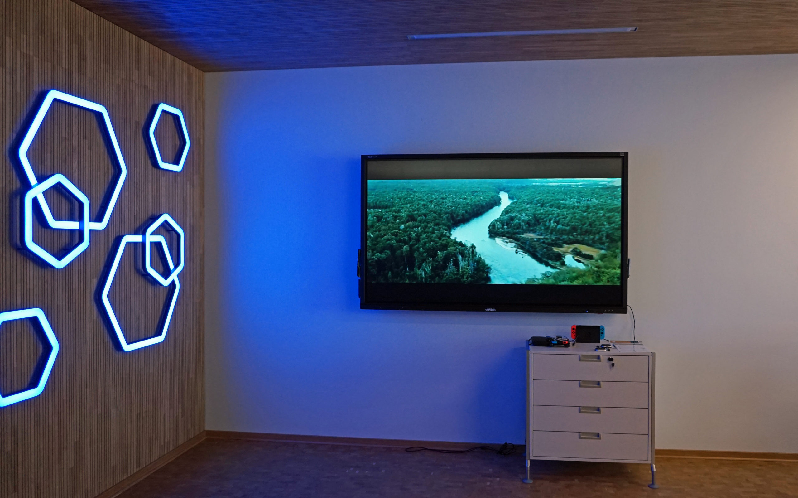 Wir haben formschöne Akustikdecken verbaut, u.a. Lignotrend. Im Kino-Bereich sorgen unsichtbare Lautsprecher in Verbindung mit einer DSP-Endstufe für optimalen Raumklang. Wir bedanken uns bei unserem Auftraggeber Müllers Büro GmbH aus Altmittweida und dem Bauherr axilaris GmbH aus Chemnitz für die gute Zusammenarbeit.