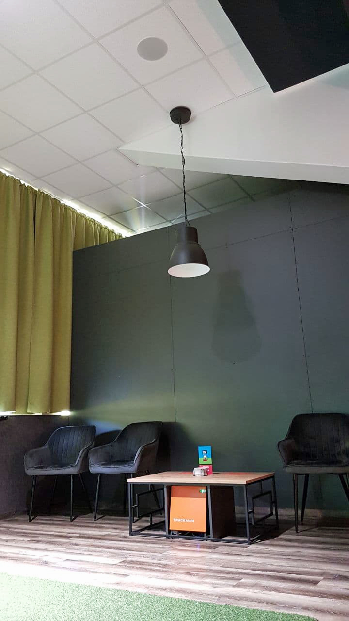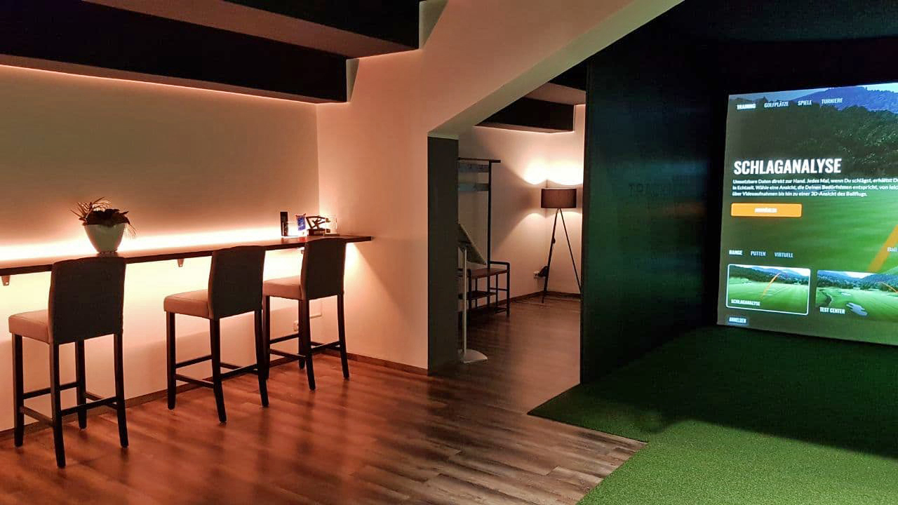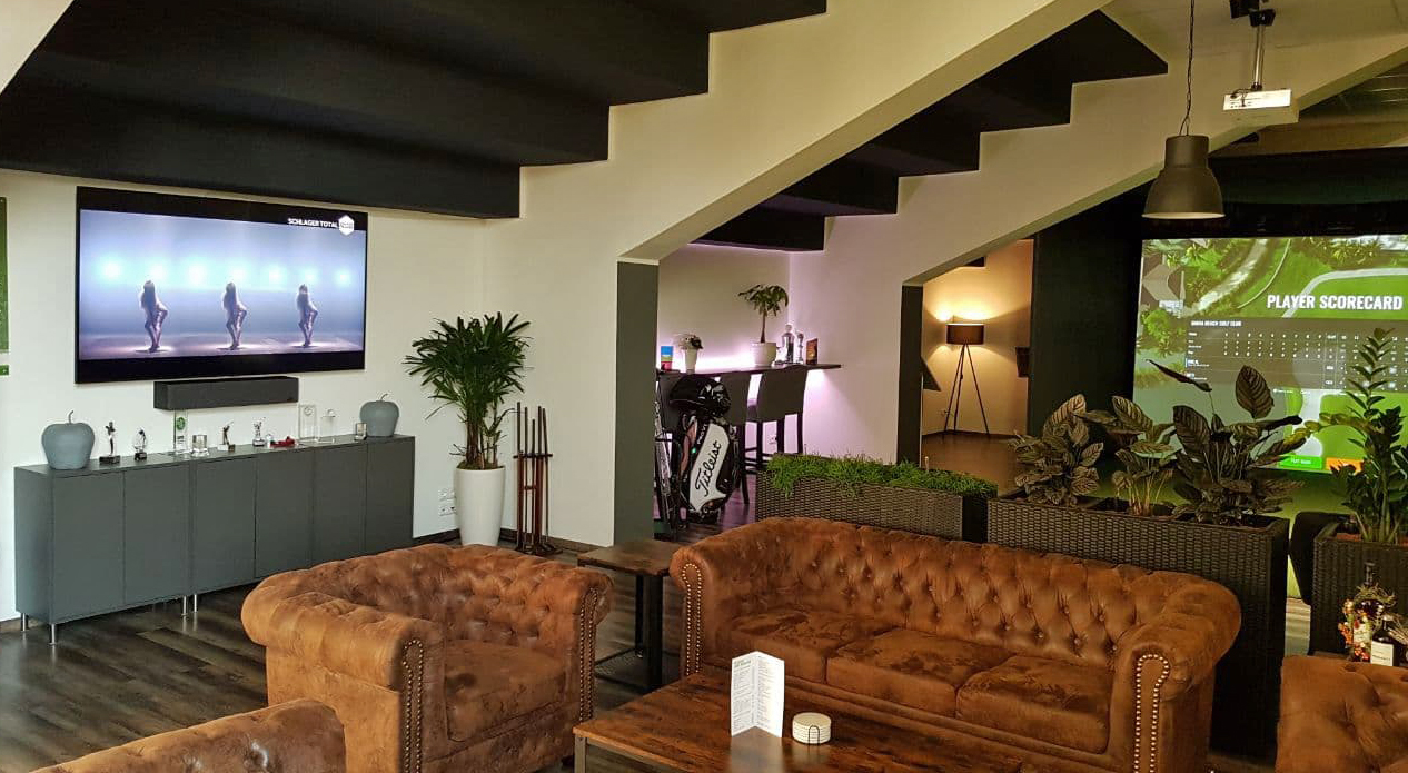 Beim GOLFHUB Chemnitz kann mit echtem Golf-Equipment trainiert und reale Golf-Courts bespielt werden. Dafür stehen 3 Spielfelder mit großen Leinwänden und Abschlags-Sensor bereit. Wir haben für die Musikbeschallung pro Spielfläche einen Fullrange Stereo-Lautsprecher in die Decke verbaut. Für den Lounge-Bereich mit TV kommt eine passive Soundbar zum Einsatz. Der 8-Kanal-Verstärker erlaubt eine akkurate Sound-Anpassung und die Steuerung der Lautstärken pro Zone. Neben den Spielfeldern sind schmale Nischen mit Tischen entstanden. Wir konnten dort LED-Profile sichtbar und unsichtbar installieren. Geschmackvolle Lichtszenen lassen sich bequem per iPad vom Tresen aus abrufen.